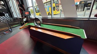 Smashing together the chaos of crazy golf with the skill of American pool, Roxy Ballroom have created a one-of-a-kind course where every shot’s a challenge.