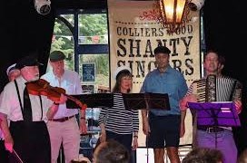 This group have seven singers, an accordionist and a violinist, have been performing shanty songs in bars and theatres in London for three years, have a repertoire of 80 shanty songs, and requests are welcomed.